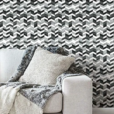 RoomMates RMK11356RL Paul Brent Black Watercolor Chevron Peel and Stick Wallpaper