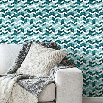 RoomMates RMK11358RL Paul Brent Teal Watercolor Chevron Peel and Stick Wallpaper