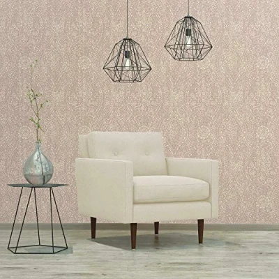 RoomMates RMK11571WP Pink and Taupe Ornate Ogee Peel Stick Wallpaper