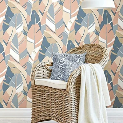 RoomMates RMK11575RL 45.72 cm x 5.74 m Vinyl Hearts of Palm Wallpaper, Blue, Pink