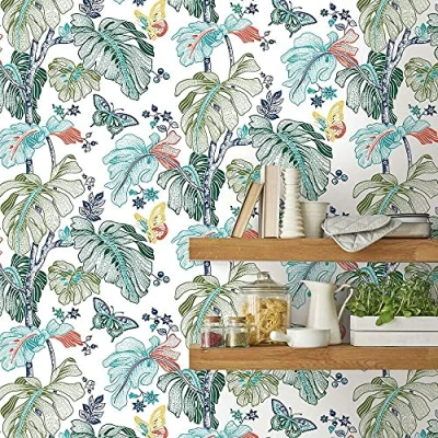 RoomMates RMK11587RL Orange & Blue Palm Tree Self Adhesive Wallpaper