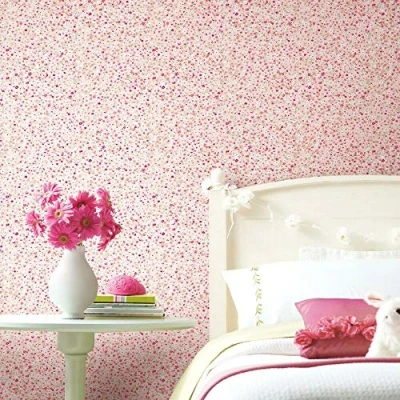 ROOMMATES RMK11608RL Small Petite Floral Adhesive Wallpaper, Pink and Green, 45.72 cm x 5.74 m