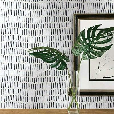 RoomMates RMK11611WP Tick Mark Navy and White Peel Stick Wallpaper, Navy/White