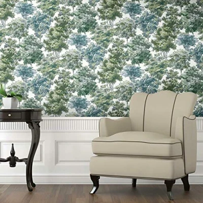 RoomMates RMK11615WP Old World Trees RMK1161, Green and Blue, Sample