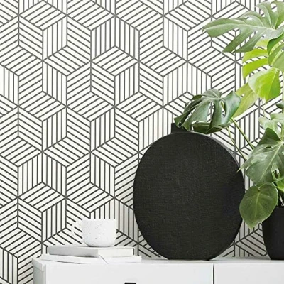 RoomMates RMK11720WP Striped Hexagon RMK1172, Black/White