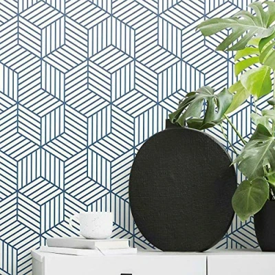 RoomMates RMK11721WP Striped Hexagon RMK1172, Blue/White