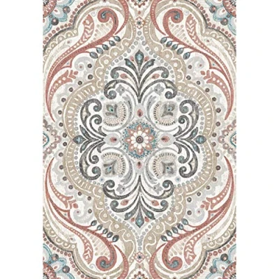 RoomMates RMK11830WP Beige and Red Boho Damask Peel Stick Wallpaper