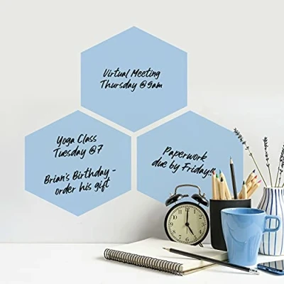 RoomMates RMK4880SCM Blue Hexagon Dry Erase Peel and Stick Wall Decals