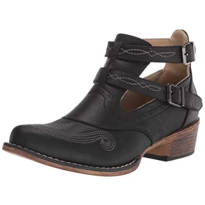 FASHION BOOTIES FOR WOMEN: The Roper Willa Ankle Boots are the perfect complement to your chic Western chic style. Crafted for the modern cowgirl, these fashion boots are a trendy combination of an elegant look with western designs. SNIP TOE FASHION DESIGN: These women’s boots feature a snip toe with a 1 1/2 inch traditional western heel and 5 inch shaft with dual buckle closure. Heights are based on a woman’s size 7 and may vary by shoe size. COMFORTABLE & DURABLE SOLES: A cushioned insole enhances comfort during those long days outdoors. The ankle boot is further reinforced by a flexible TPR outsole, ensuring its durability for all day wear and long-lasting use. LOOKS & FEELS LIKE REAL LEATHER: This classic short cowgirl boot is designed and made with superior, synthetic leathers to combine style, fashion, and durability at an affordable price. EXCELLENT WORKMANSHIP: Crafted with fashionable and classic western styling for the cowgirl in every woman. These western boots are equally durable and rugged with attractive designs for a look you will love.