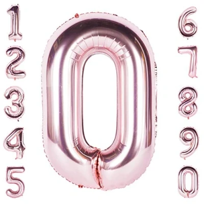 Rose Gold 0 Balloon 40 Inch Giant Helium Foil Number to 9 Birthday Wedding Party Digital Decorations