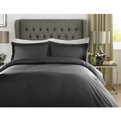 Roseley 100% Cotton Bed Set 400TC Natural Breathable Checked Duvet Cover Pillowcases Home Hotel Bedding Hypoallergenic [Double, Black]
