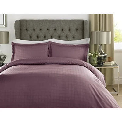 Roseley 100% Cotton Bed Set 400TC Natural Breathable Checked Duvet Cover Pillowcases Home Hotel Bedding Hypoallergenic [King, Grape]