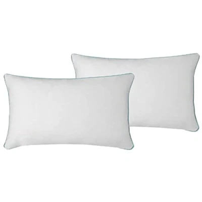 Roseley 2pc Egyptian Cotton Piped Cushion Covers 400TC Plain Soft Natural Decorative Sofa Throw Cases 30 x 50cm [White Duck Egg Edges]