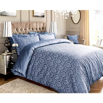 Roseley 600TC Jacquard Duvet Cover Set 80% Cotton Ornamental Bed Covers Soft & Warm Extra Pillowcases Available [Blue Damask, Super King]