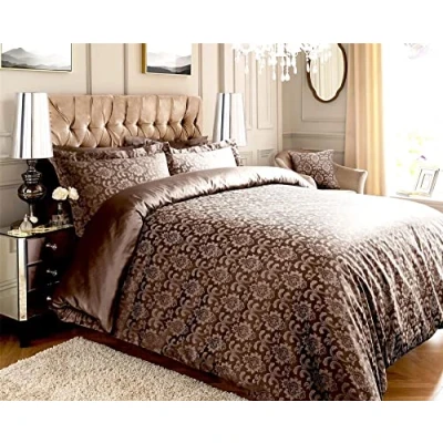 Roseley 600TC Jacquard Duvet Cover Set 80% Cotton Ornamental Bed Covers Soft & Warm Extra Pillowcases Available [Brown Damask, Double]