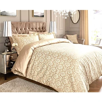 Roseley 600TC Jacquard Duvet Cover Set 80% Cotton Ornamental Bed Covers Soft & Warm Extra Pillowcases Available [Natural Damask, Super King]