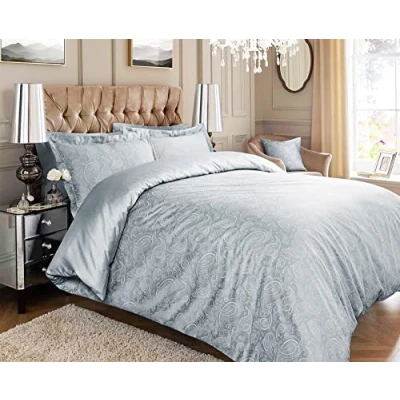 Roseley 600TC Jacquard Duvet Cover Set 80% Cotton Ornamental Bed Covers Soft & Warm Extra Pillowcases Available [Silver Paisley, Double]