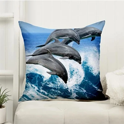 Roseley Decorative Cushion Covers With Inner Pads Digital Animal Print 45 x 45cm Throw Pillows Fillers & Cases [Dolphin, 1pc]