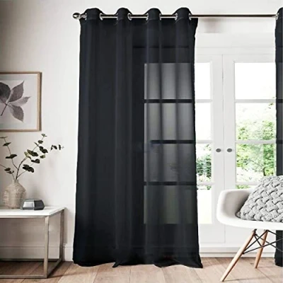 Roseley Eyelet Voile Curtain 1 Panel Mesh Light Living Room Patio Door Drape Nursery Sheer Organza Net Semi Transparent [Black, W:58'' x D:48'']