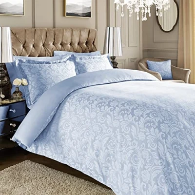 Roseley Jacquard Duvet Cover Bed Set Floral Print Cotton Rich 3 Piece Bedding Pillowcases 600TC Warm & Soft (Double, 2 Blue)