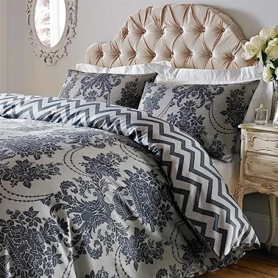 GIVE YOUR BEDROOM A NEW LOOK with this ultra-soft duvet cover set featuring a stunning damask pattern. Woven of 200-thread count for a lustrous look and easy iron. Snuggle down into our soft bedding for a good night's sleep any time of the year. Each set comes with duvet cover and decorative pillowcases to give your bedroom an instant makeover. THE REVERSIBLE DESIGN of our bedding is what makes the difference. The front of each cover showcases a vibrant and floral pattern, while the back maintains the same hue but a simple, linear print - providing a harmonious yet dynamic decoration. This means that you can switch up the look of your room with ease, simply by flipping the duvet or cushions over. 200TC MICRO POLYESTER FABRIC - well known for its softness, durability and wrinkle-resistance. AVAILABLE IN 3 SIZES: Double (200 x 200cm), King (230 x 220cm) and Super King (260 x 220). Each duvet cover comes with a pair of housewife pillowcases (featuring the matching damask print on the front and a linear pattern on the back). Size of the pillowcases: 48 x 75cm. EASY CARE - machine washable (avoid hot water and strong detergents).
