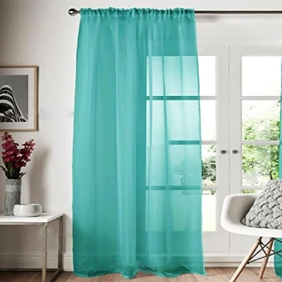 Roseley Slot Top Voile Curtain 1 Panel Mesh See Through Living Room Patio Door Drape Nursery Sheer Organza Net [Teal, W:58'' x D:72'']