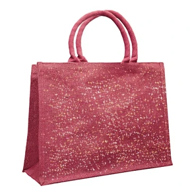 Roseley Strong Jute Shopping Bag Webbed Handles & Waterproof Lining Large Reusable Hessian Veggie Grocery Shopper [Maroon Glitter]