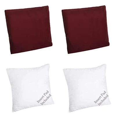 Roseley Waterproof Cushion Cover With Insert Pad Scatter Pillow 45 x 45cm Outdoor Throw Pillows Removable Cases Garden Patio Sofa Fillers [Maroon, Set of 2]