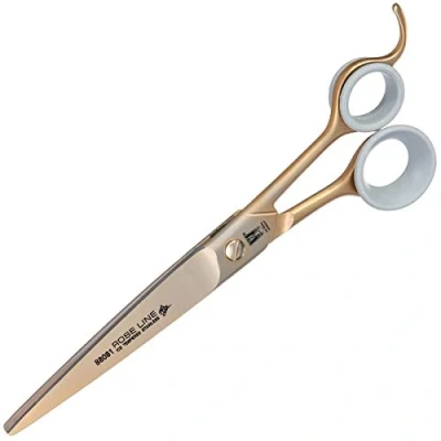 Roseline 88081 Gold Scissor 8.25" Roseline are now widely accepted as some of the best professional grooming scissors available. Their philosophy and motivation is to "unite the tradition of scissor production with the best technology and innovation." For more than 35 years they have produced high quality scissors with the quality seal "Made in Solingen." They produce innovative products, in up-to-date designs, in their headquarters in Solingen, Germany. Wide Blades for Thick/Woolly Coats Gold finish Larger Thumb Hole Want to get the most out of your Scissors? Check out Looking after your Scissors L EVEL 2 - Work-horse scissors for every day professional use.