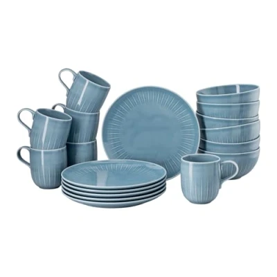 Rosenthal Joyn Denim Blue 18 Piece Mug Set, Stoneware, Tableware, Dinnerware, Coffee Service, Breakfast Plates, Mugs, Bowls, Soups, Cereal,