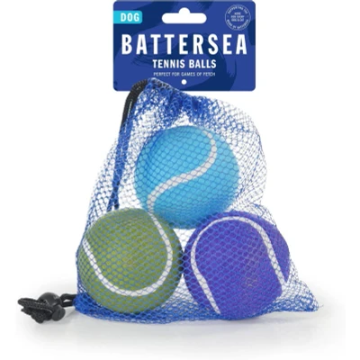 Rosewood Battersea Blue&Green Tennis Balls Dog Toys (3pcs, 6.5cm) are durable, brightly coloured tennis balls designed for interactive fetch with dogs of all life stages. Made from non-woven felt and natural rubber, these balls offer fun, exercise, and value, ideal for supervised outdoor play.