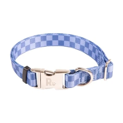 Rosewood Blue Checkerboard Dog Collar Adjustable Pet for Small, Medium, Large Dogs Stylish, Durable with Metal Hardware 10 14"