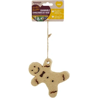 EDIBLE & BENEFICIAL. 12cm x 1cm Gingerbread Man gnaw treats made from wood fibres and vegetable-based ingredients, which helps wear teeth and satisfies a pet's need to gnaw SPLINTER-FREE & SAFE. The gnaw is as hard as solid wood without the risk of splintering, making it safe for all pets SUBTLE FLAVOURING. It has a peanut butter flavouring that encourages pets to gnaw CONVENIENT HANGING CORD. Comes with a removable, natural jute cord that makes it easy to hang in cages and enclosures SUITABLE FOR ALL SMALL PETS. Ideal for Rabbits, Guinea Pigs, Hamsters, Degus, Chinchillas, Gerbils, Rats and Mice, and completely edible