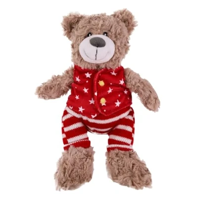 FESTIVE HOLIDAY DESIGN: Buddy Bear is dressed in red-and-white knit trousers and a star-print waistcoat with gold embroidery for a charming seasonal look SUPER SOFT PLUSH: Made from ultra-soft materials, perfect for cuddling and gentle play during the holiday season BUILT-IN SQUEAKER: With a hidden squeaker for added fun and stimulation to keep your dog engaged and entertained IDEAL FOR SNUGGLING: Great for dogs who love to relax with a cozy companion after playtime CHRISTMAS GIFT FOR DOGS: A thoughtful holiday treat for your pup or a festive present for dog-loving friends and family