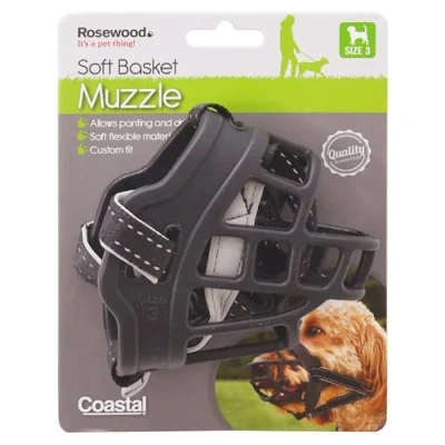 Rosewood Coastal Training Soft Basket Muzzle, Black, Size 3