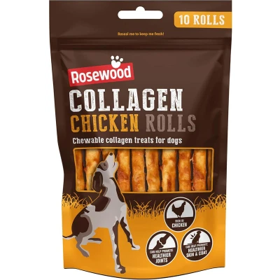 Rosewood Collagen Small Chicken Rolls, Chewable Dog Treats for Small, Medium and Large Breeds, Promotes Healthier Joints, Skin, Coat 10pc, 70g (Case of 12 Packs)
