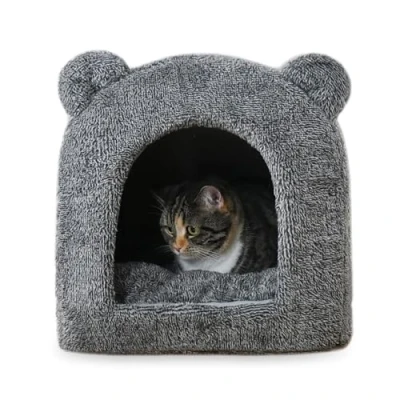 COSY & SOFT. Our grey teddy bear cat bed is extremely cosy, soft, and made from excellent quality fabric VERSATILE. The inner is made from soft and comfortable plush fabric to keep your cat warm and relaxed. It can be turned into a flatter, oval shaped bed if the cat cave entrance is pushed down DURABLE & SAFE. Tough stitching gives the bed durability, assisted by a non-slip base to stop sliding while your pet wiggles around STYLISH CAT HIDE-AWAY, not only is it cosy and comfy, but it’s also designed to complement a modern home DIMENSIONS & CARE. 37 x 38cm. The removable inner cushion is machine washable on a 30°C, gentle cycle. The outer bed is wipe clean only. Use mild detergent, do not bleach, iron, or tumble dry.