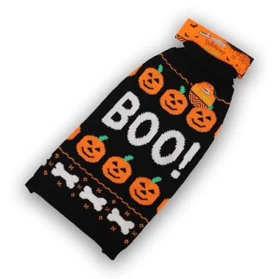FUN HALLOWEEN BOO DESIGN: Features a bold and playful “BOO” print with Halloween-themed colours to give your dog a spooky-cute look during autumn walks SOFT & COMFORTABLE KNIT FABRIC: Made from warm, breathable knitted material that provides gentle insulation and allows your dog to stay cosy without overheating MEDIUM FIT FOR POPULAR BREEDS: Sized for medium dog breeds and offers a close yet flexible fit to support natural movement during play or rest ROLL NECK STYLE FOR ADDED WARMTH: Designed with a classic roll neck that provides extra coverage and comfort around your dog’s neck EASY TO DRESS & CLEAN: Simple to slip on and off, this lightweight dog jumper is also machine washable, making it a convenient choice for regular wear throughout the autumn season