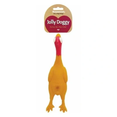 This Rosewood Jolly Doggy Chicken toy is the will give your dog the ultimate play and fun. Featuring a chicken design, this latex toy comes with a durable design so you can enjoy throwing this toy for your pooch to fetch. Great fun for both dog and owner! It also comes with a squeak feature for added entertainment.. 1 x Rosewood Jolly Doggy Chicken Dog Toy. L 42cm x W 14cm (approx). Squeak design. Throw and fetch toy