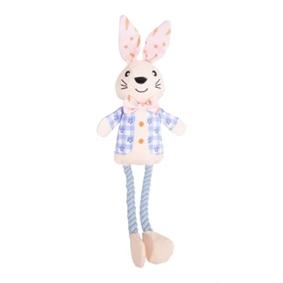 Rosewood Ralphie Rabbit Easter Dog Toy Plush Canvas Squeaky with Rope Legs and Crinkle Ears, Interactive Play for Dogs & Puppies