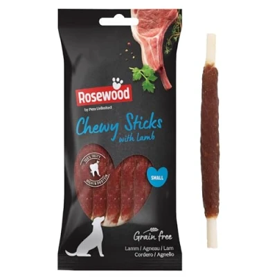 JoybuyRosewood Small Chewy Sticks for Dogs (Lamb, 72g) are natural, grain-free treats made from beef hide and real lamb meat, high in protein and low in fat, supporting healthy teeth, digestion, and overall well-being—ideal for dogs of all life stages, especially those with sensitive stomachs.