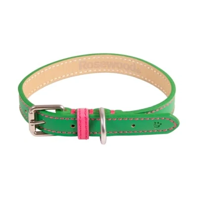 Rosewood Vegan Leather Dog Collar Adjustable PU Pet for Medium to Large Dogs Stylish, Durable with Metal Hardware Green/Pink, 18 22