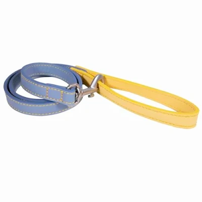 Rosewood Vegan Leather Dog Lead PU Pet Leash for Small, Medium & Large Dogs Stylish, Durable with Metal Hardware Blue/Yellow, 102cm
