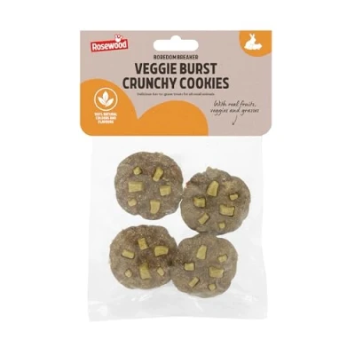 Rosewood Veggie Burst Crunchy Cookies Treat and Gnaw, Made with Natural Grasses Vegetables, Boredom Breaker Treats for Rabbits, Guinea Pigs, Hamsters all other Small Animals, 4pc