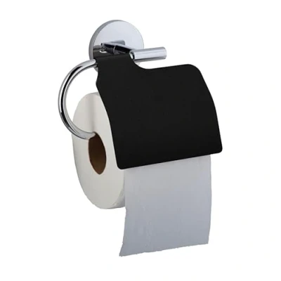 Chrome-plated steel hook and stainless steel lid Plastic material adapted to hygiene requirements Chrome-plated zinc mounting base, screws included Removable for easy cleaning, suitable for any type of toilet paper design