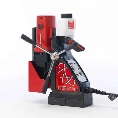 ManoManoGeneral description The ‘Element 50’ is one of Rotabroach’s most versatile machines, small in size and equipped with reversible features for tapping. It is suitable for drilling up to 50mm in diameter and 50mm in depth. The ‘Element 50’ can also be supplied as a non-tapping machine, making it adaptable for various applications. Technical specifications Model Number: Element 50/1 Motor Specification: 110V 1500W No Load RPM: Low Gear: 100-265 RPM, High Gear: 200-500 RPM Max Hole Cutting Capacity: ø50 x 50mm Deep – 23mm with MT Shank Drill Overall Dimensions: Height: 460mm, Width: 195mm with Capstan, Length: 400mm with Guard Machine Weight: 15.8kg Magnetic Adhesion: 13,500N Magnet Size: 200mm x 98mm Other information Safety Features: Cutsmart™ Technology, Fixed Guard, Magnetic Detection, Mechanical Clutch Warranty: All Rotabroach products are guaranteed for a period of 12 months from the date of purchase. If your product develops a fault within this period, Rotabroach will collect the