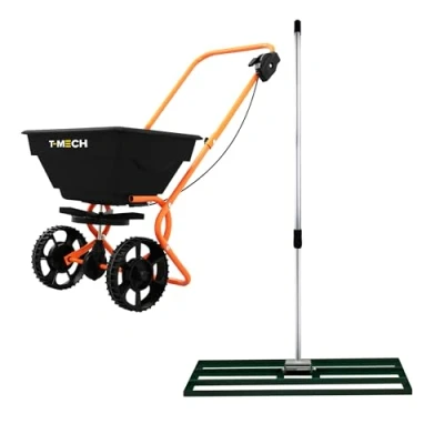 ManoManoGeneral description Transform your outdoor spaces with this lawn leveller and rotary spreader bundle, the ultimate duo for achieving a perfectly level lawn and maintaining it throughout the year. From levelling soil and preparing the ground to distributing fertiliser, sand, or grit, this bundle combines efficiency, durability, and ease of use to meet all your lawn care needs. Technical specifications Lawn Leveller Colour: Green Lawn Leveller Weight: 2.36kg Lawn Leveller Material: Powder Coated Galvanised Steel Lawn Leveller Height: 30mm / 3cm / 1.2” Lawn Leveller Width: 1000mm / 100cm / 39.4” Lawn Leveller Depth: 320mm / 32cm / 12.6” Handle Colour: Silver Handle Material: Aluminium Handle Weight: 1kg Handle Smallest Height: 115cm / 1.15m / 45.3” Handle Extended Height: 190cm / 1.90m / 74.8” Spreader Colour: Black & Orange Spreader Weight: 4kg Spreader Material: Steel & Plastic Spreader Height: 760mm / 76cm / 29.9” Spreader Width: 465mm / 46.5cm / 18.3” Spreader Depth: 830mm / 83cm /
