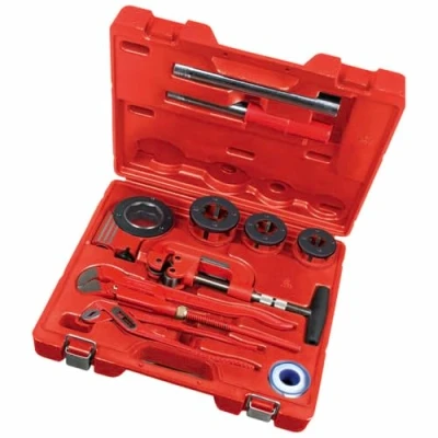 The professional complete set in a plastic case for the do-it-yourselfer Our recommendation: Always use thread cutting oil (e.g. RONOL 65013). For all installation work in the plumbing and heating sector; Ideal for repair and assembly work as well as cutting steel pipes up to Ø 1 1/4" (31.75 mm); Thread cutting up to Ø 1" (25.4 mm); Recommendation: Always use thread cutting oil (e.g. RONOL 65013); Assembly, screwing, loosening and sealing of threaded connections up to Ø 1 1/4" (31.75 mm). 1x plastic case; 1x ratchet lever, two-piece; 1x ratchet tap Super Cut 1 1/4", with small 8-edge socket and proven quick-change; 3x tap heads with small external octagon (BSPT right 1/2" - 3/4" - 1") for tapered (conical) pipe threads 1:16; 1x steel pipe cutter - 1 1/4"; 1x corner pipe wrench - 1"; 1x water pump pliers - 250 mm, 10"; 1x roll of Teflon tape, Weight: 14.881202685 Pounds, Manufacturer: MBrands