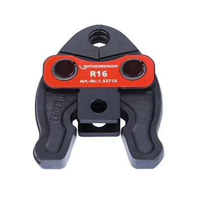 The product type is Rothenberger 015371X R16 Compact Press Jaw, 16mm In combination with the forged, heavy-duty and flexible special steel, the new press jaw generation has a 100 Percent longer lifespan compared to its predecessor The 3-bolt synchronous mechanism enables the pressing jaw to be opened with one finger