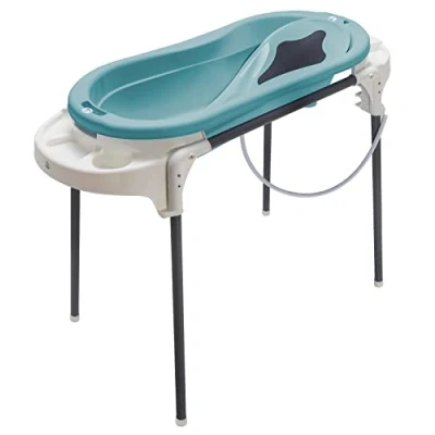 Rotho Babydesign Bath Set with Large Bathtub and Functional Stand, Ideal for 2 Children, 0 12 Months, Lagoon Top Xtra Bathtub, 21041 0292 0101